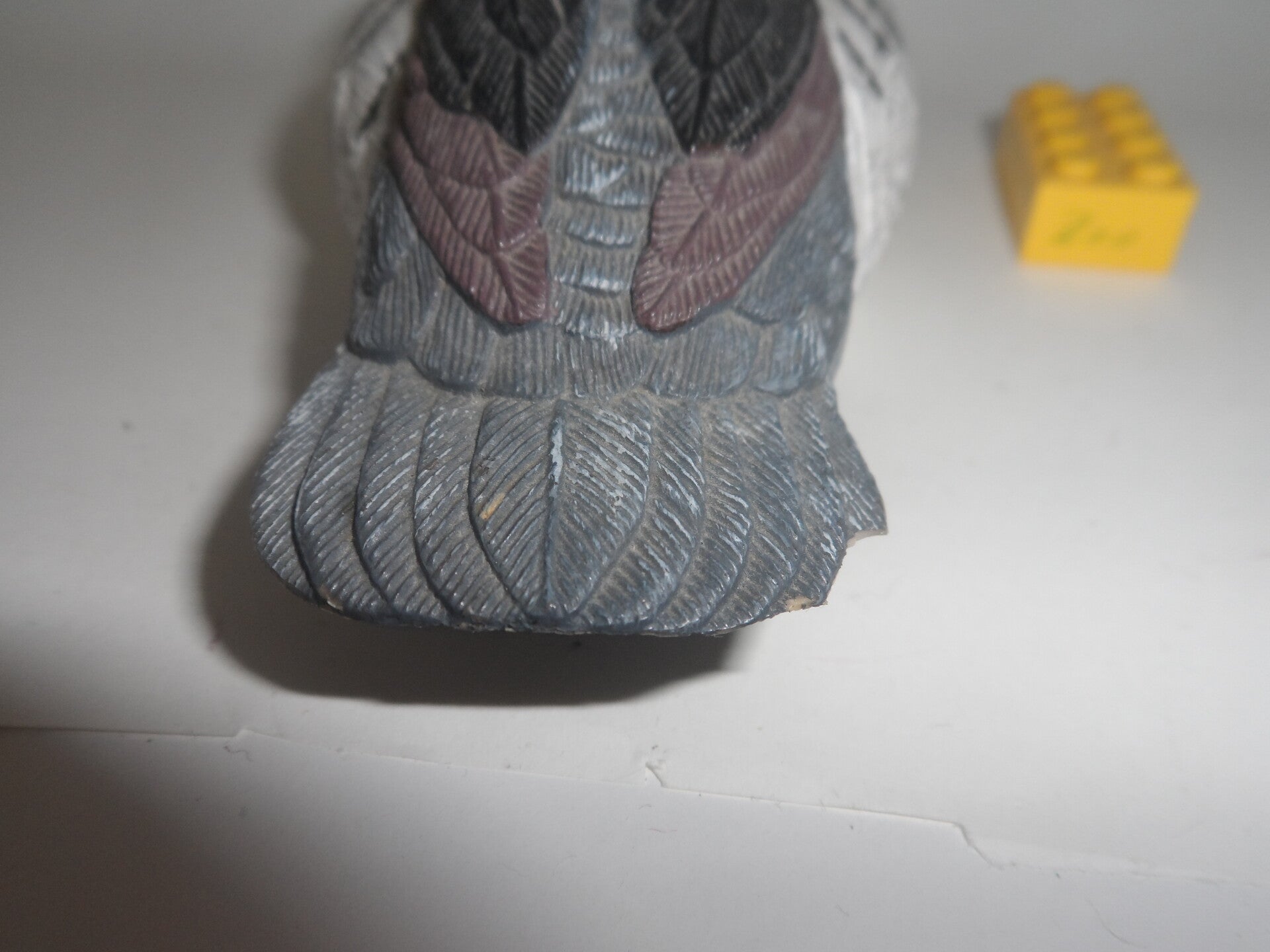 Dies ist eine Figur einer (vermutlich) Büffelkopfente. Hersteller unbekannt , Material Hartplastik. Die Figur ist in einem gebrauchten und hat leider ein paar Schwanzfedern verloren (kleine Ecke weggebrochen -siehe Foto)